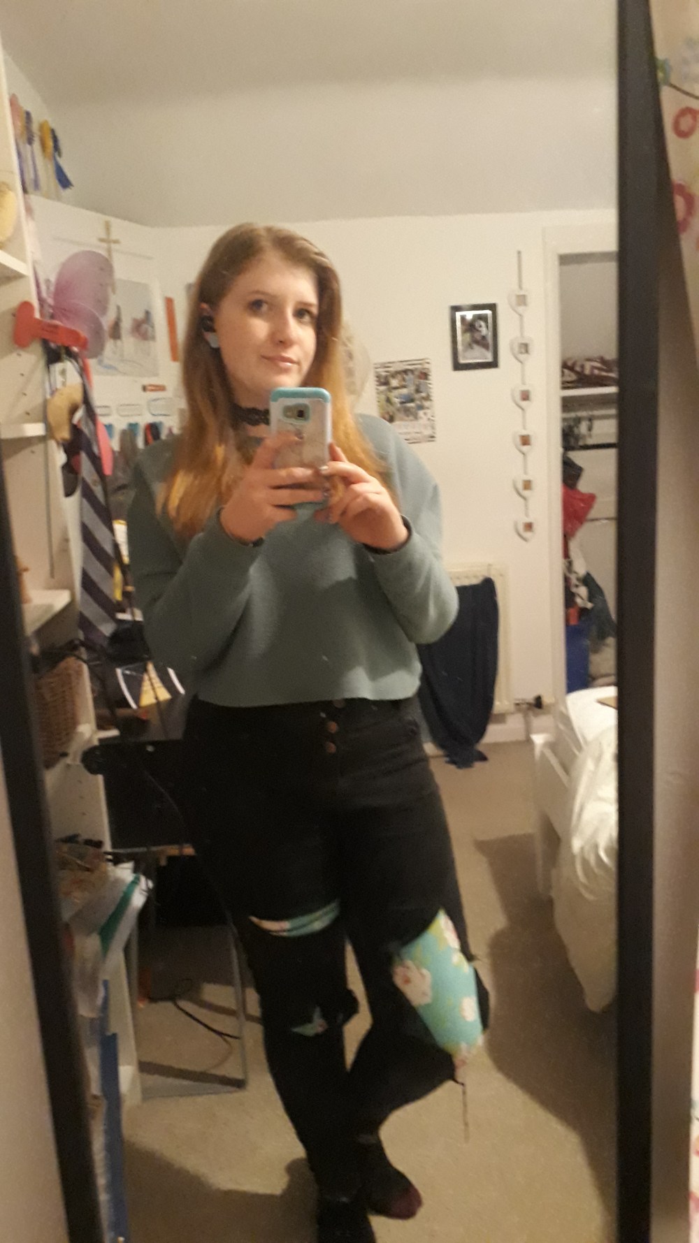 I loved my outfit today because the cropped jumper and thick choker was very 90s and I think that the green of the jumper is a really pretty colour.